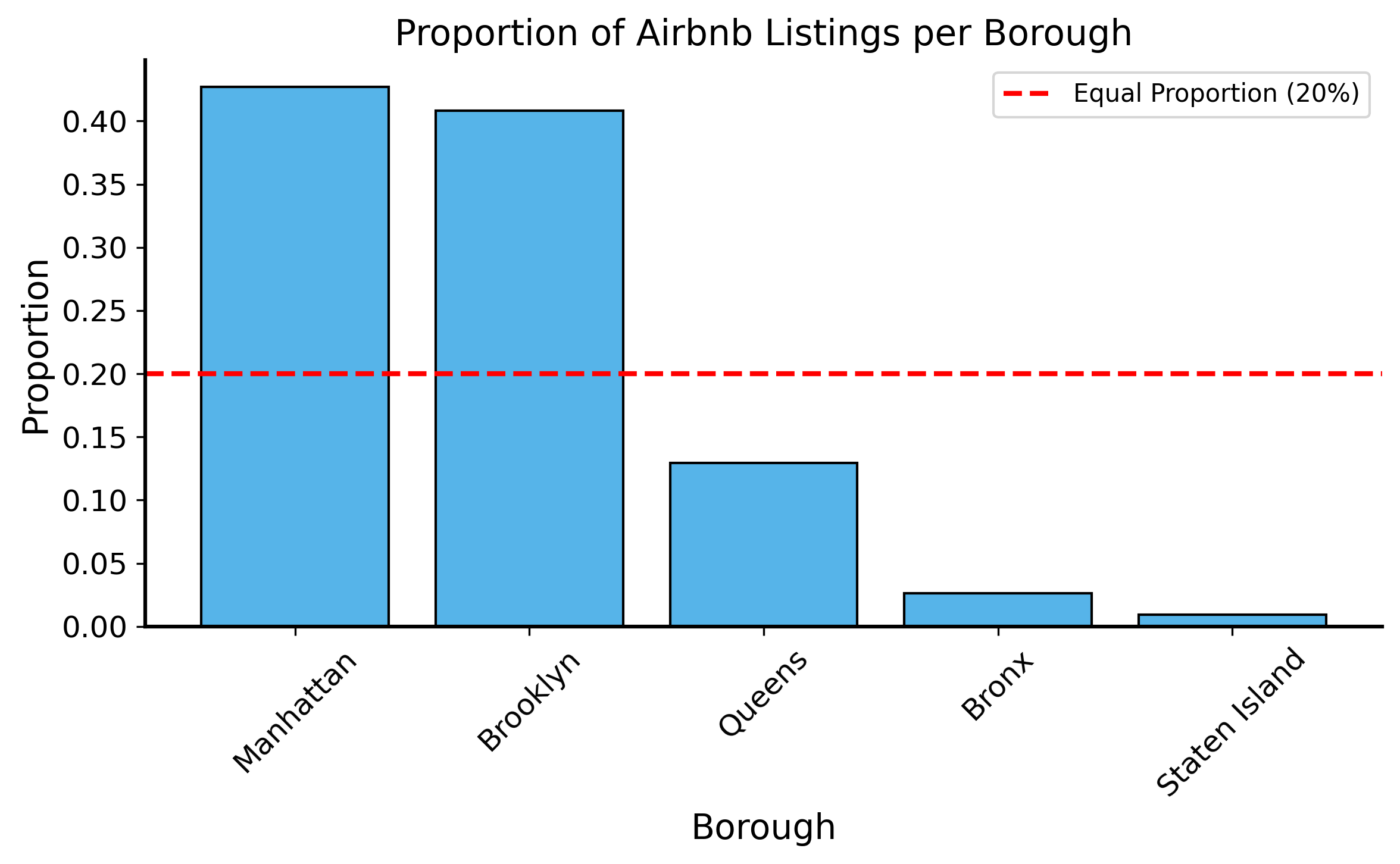 it intuitively seems unlikely that we would see so many more listings in Manhattan and Brooklyn than in the other boroughs if all boroughs were equally likely to produce listings.
