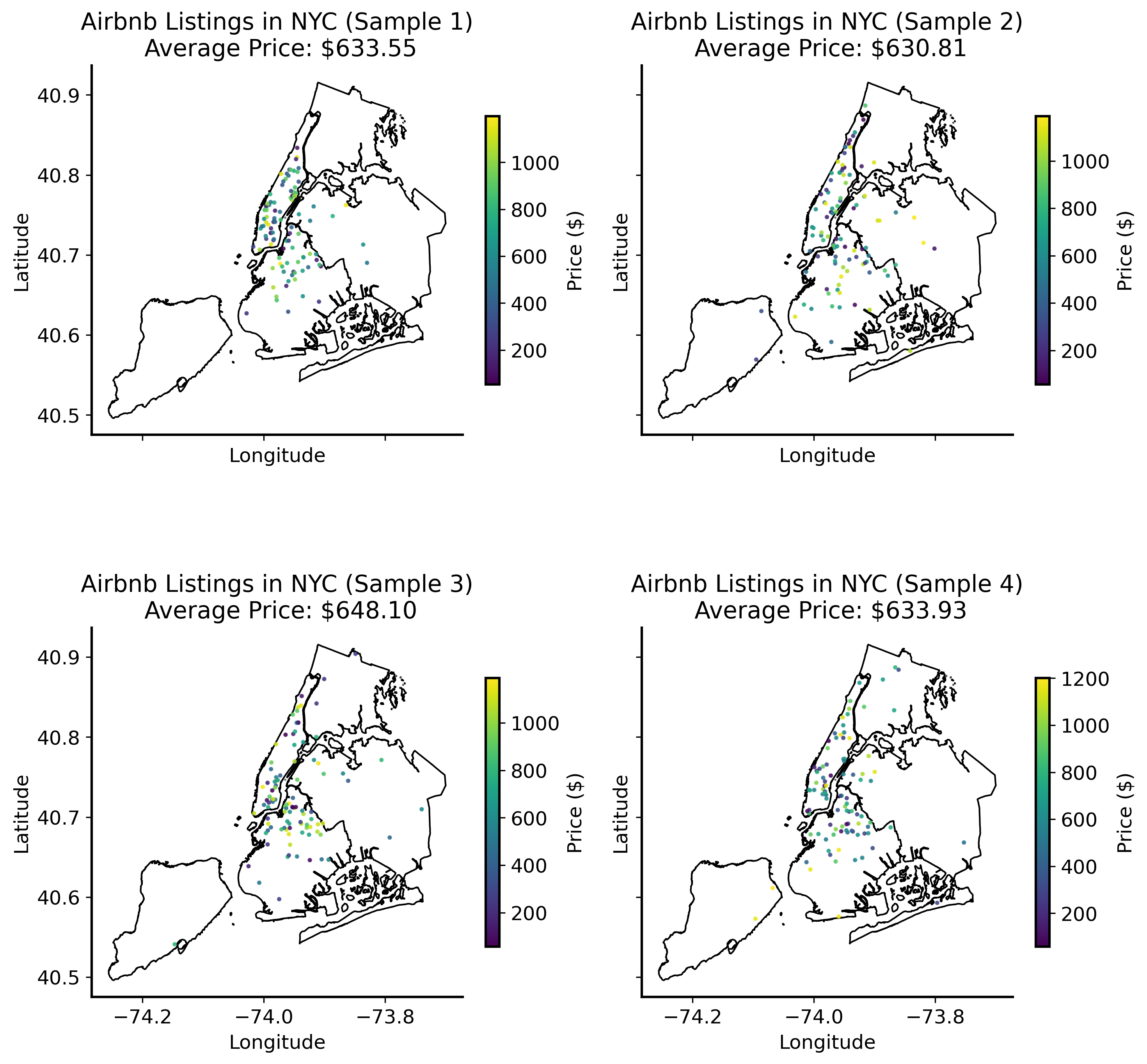 Average price of all possible Airbnb listings in New York City? Population: all potential listings, not just the ones that currently exist.