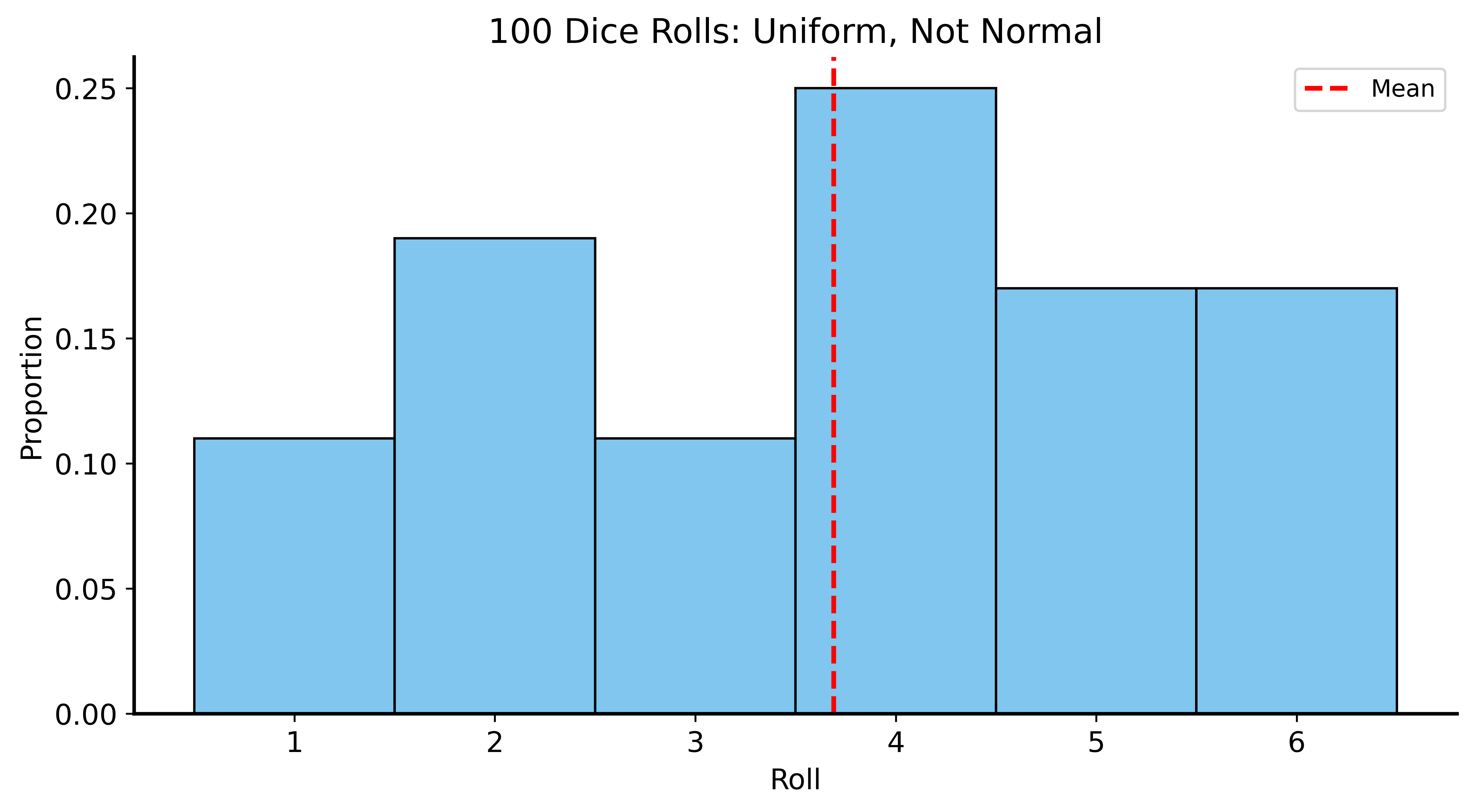 But what about the average of many dice rolls?