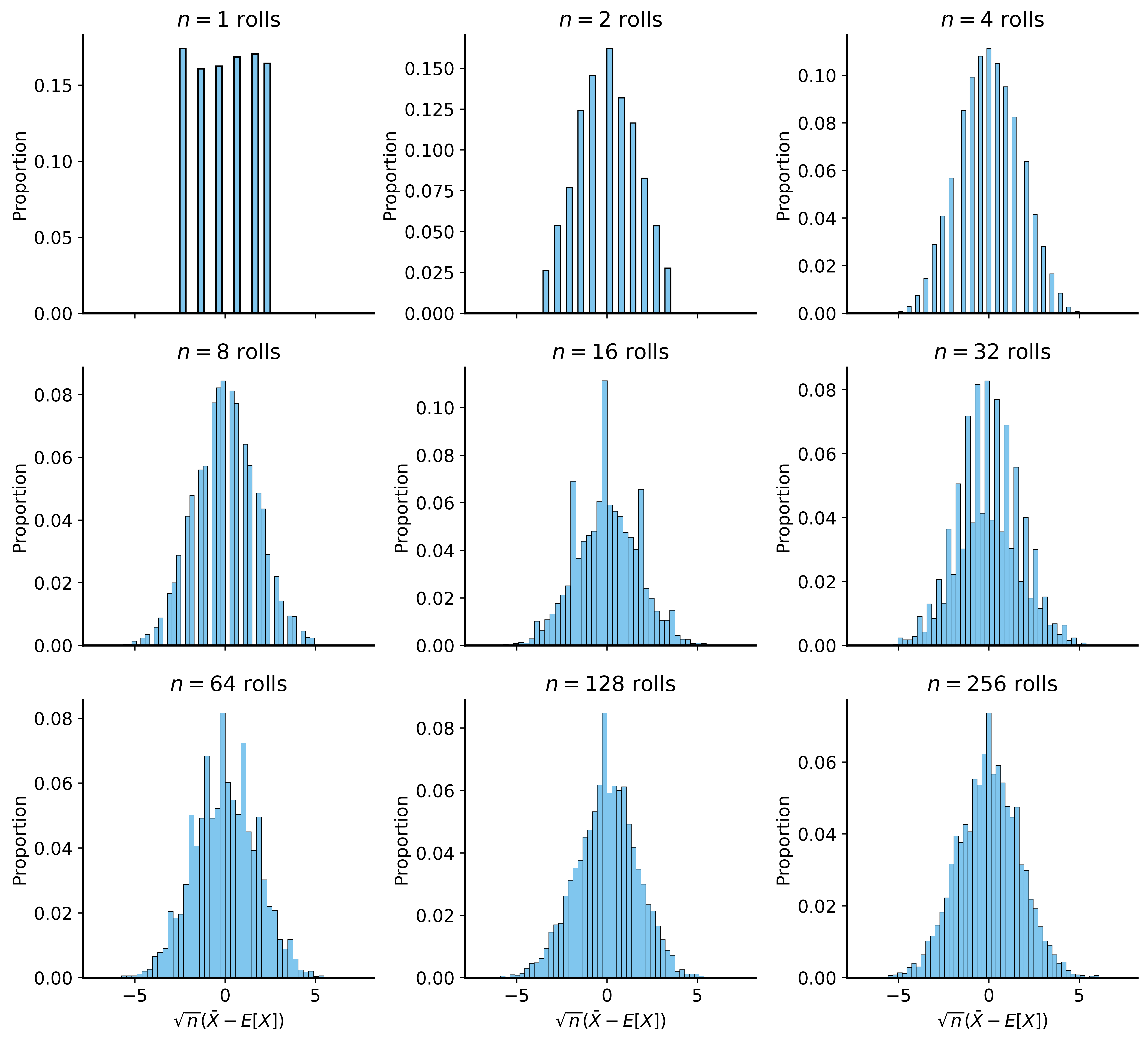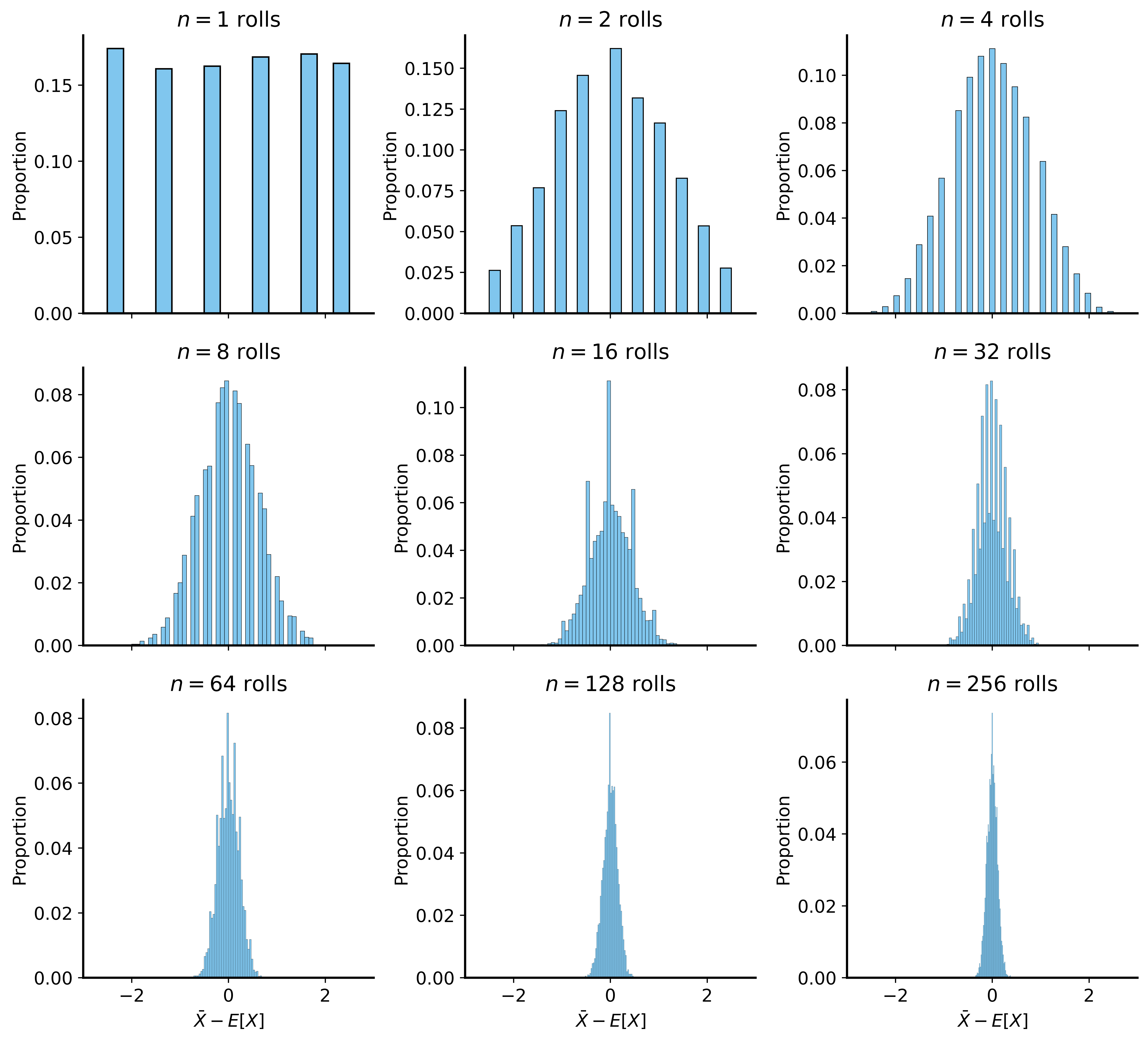 Formally: Let \(X_1, \ldots, X_n\) be i.i.d. with mean \(\mu\) and variance \(\sigma^2\)