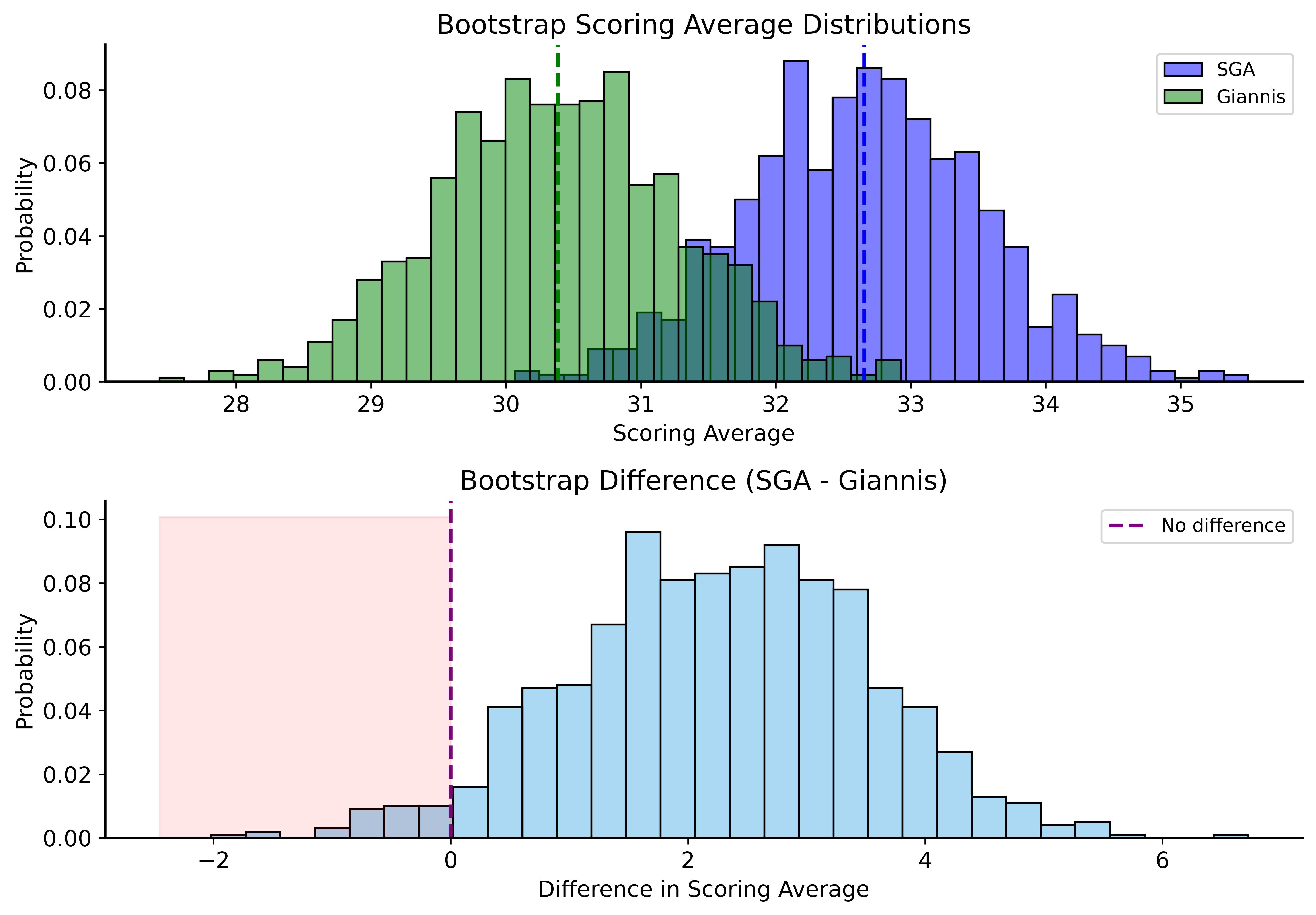 observed_diff = (compare_df[compare_df["player"] == "Shai Gilgeous-Alexander"]["PTS"].mean()