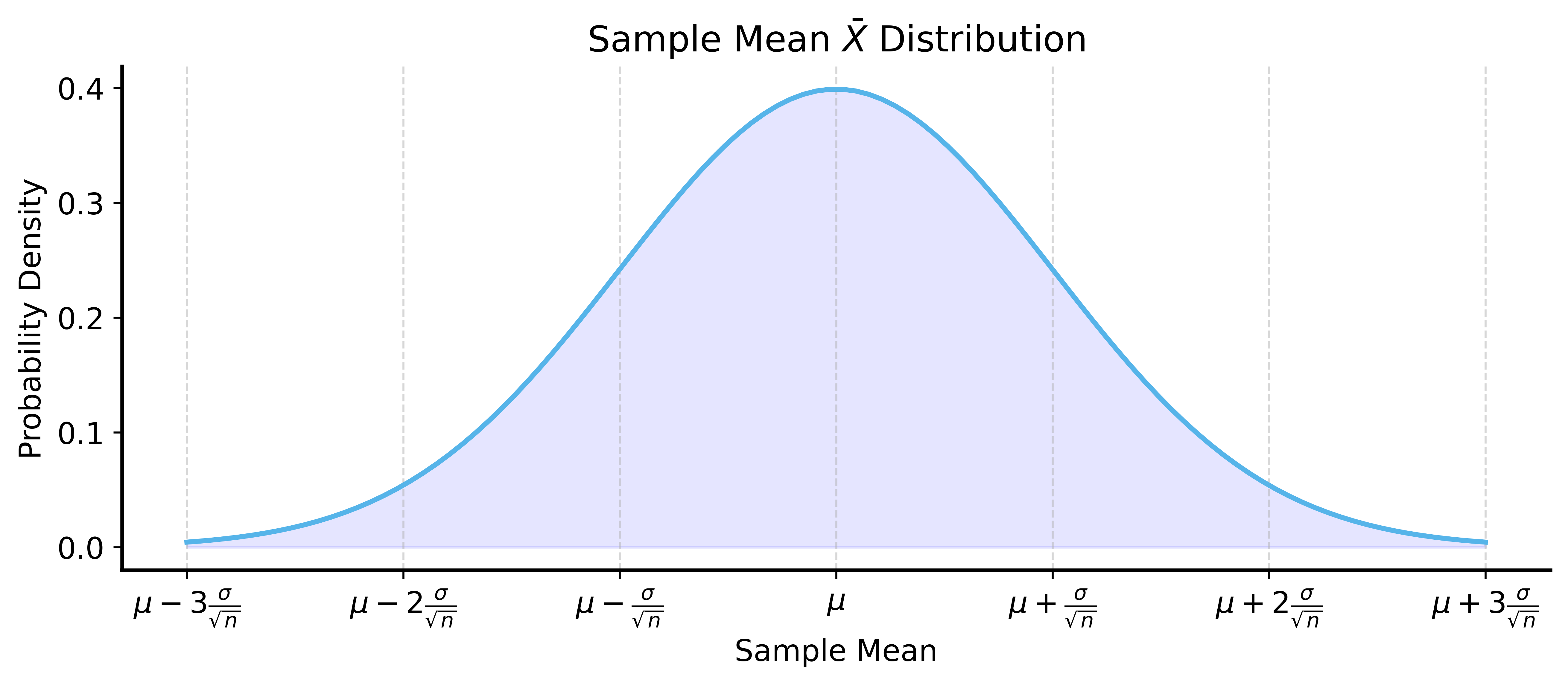 By the Central Limit Theorem, sample mean \(\bar{X}\) is approximately normal.
